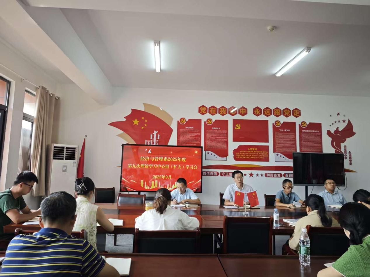 9月2日,经济与管理系党总支召开2025年第九次理论学习中心组(扩大)学习会,系党总支班子成员、各党支部书记、全体党员教师参加会议,会议由系党总支副书记、主任何松主持。