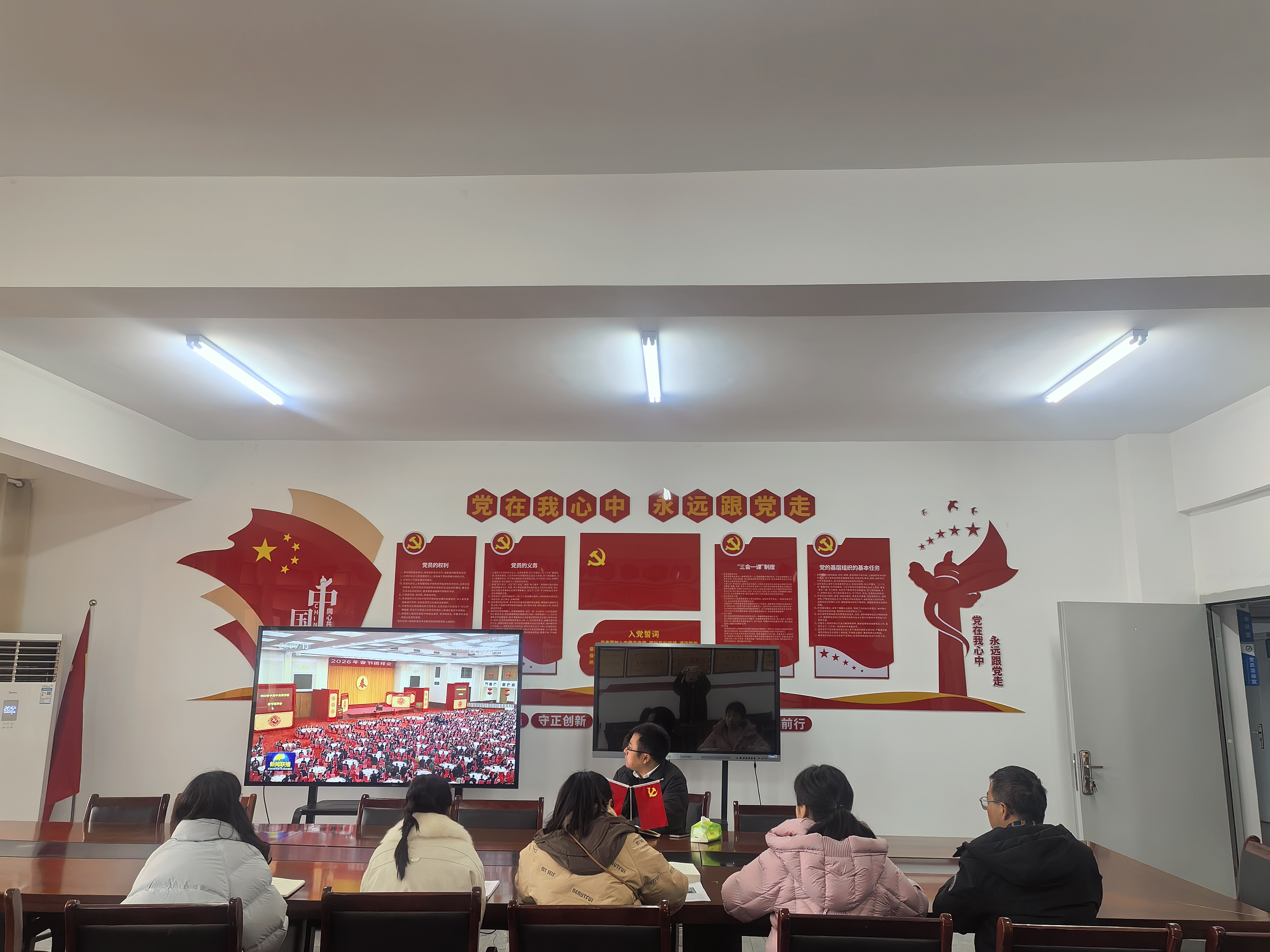 2026年2月28日,经济与管理系第一党支部全体党员教师开展集中学习主题党日活动,组织全体党员教师共同观看《习近平主席在 2025 年春节团拜会上的重要讲话》视频,并围绕专题内容开展系统学习研讨,推动党的创新理论入脑入心、落地见效。